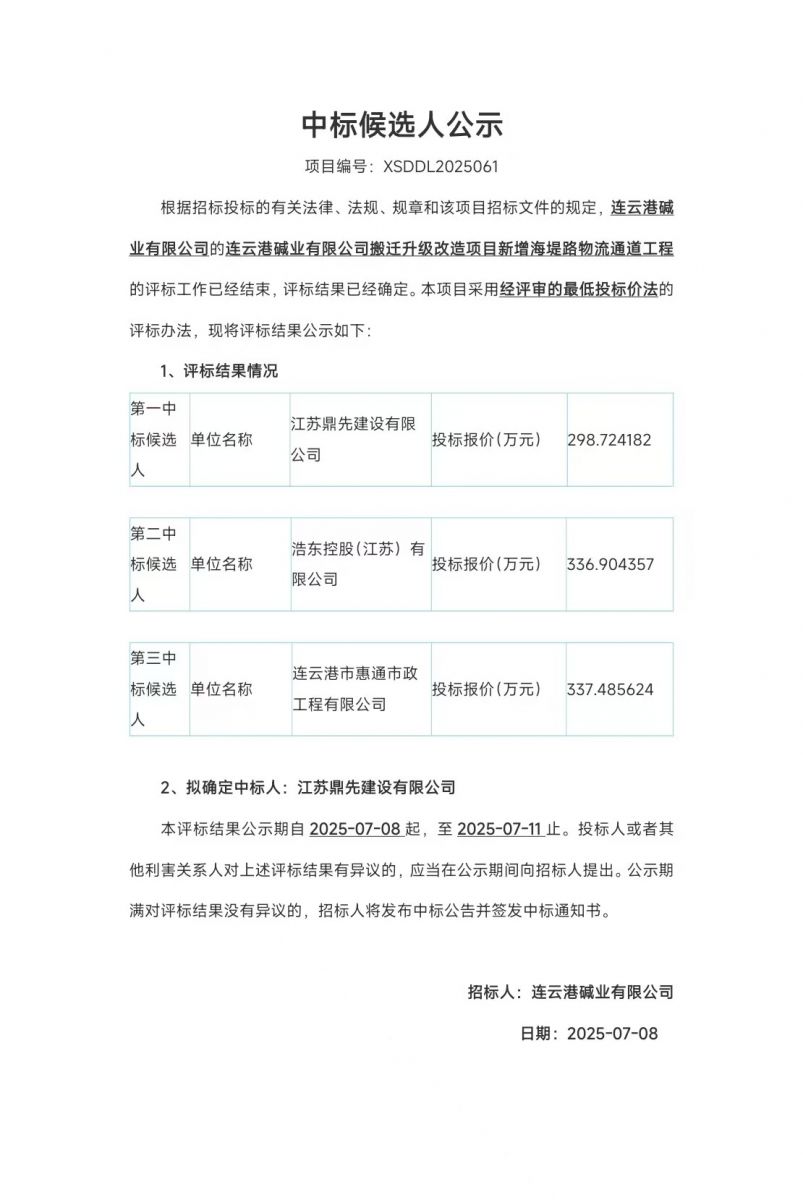 搬遷升級改造項目新增海堤路物流通道工程中標(biāo)候選人公示