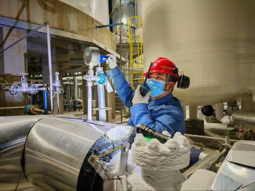 “春節(jié)期間,我們一定堅守崗位,保持最佳狀態(tài),確保各項工作有序推進(jìn)。” 空分車間員工堅定地說道。“春節(jié)期間更要打起十二分精神,不能有絲毫懈怠。” 他們密切關(guān)注著設(shè)備的運行參數(shù),仔細(xì)記錄著每一個數(shù)據(jù)。“走,除夕夜檢查不能停,一定要確保萬無一失。”夜色中,他們頂著瑟瑟寒風(fēng)認(rèn)真巡檢,檢查空壓機運行狀態(tài),保障儀表氣穩(wěn)定供應(yīng)。為了確保后序工段氮氣吹掃和密封氣供應(yīng),空分車間定時對真空液氮儲槽進(jìn)行充液,為氮氣供應(yīng)保駕護(hù)航。
